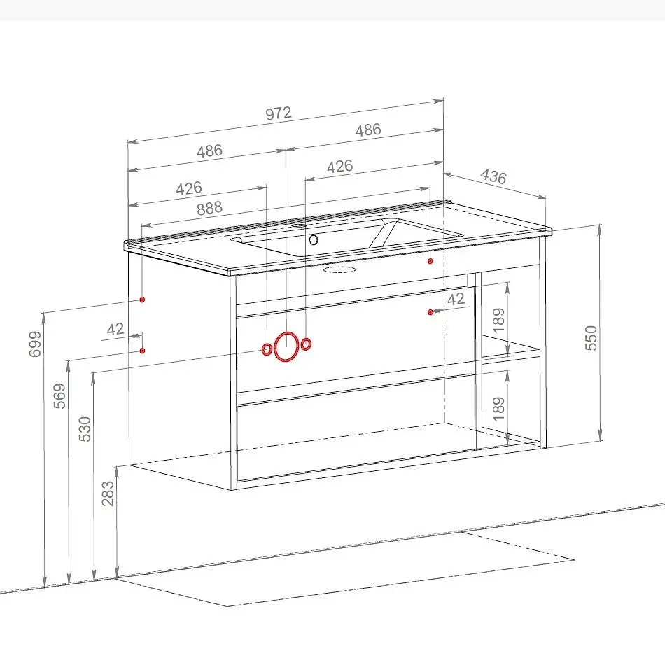 | Особливість | З відкритими полицями, З доводчиками, З умивальником, Зі стільницею |