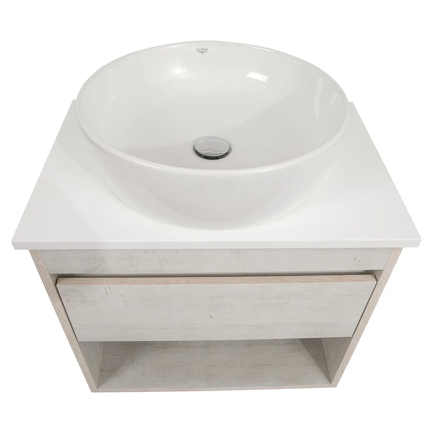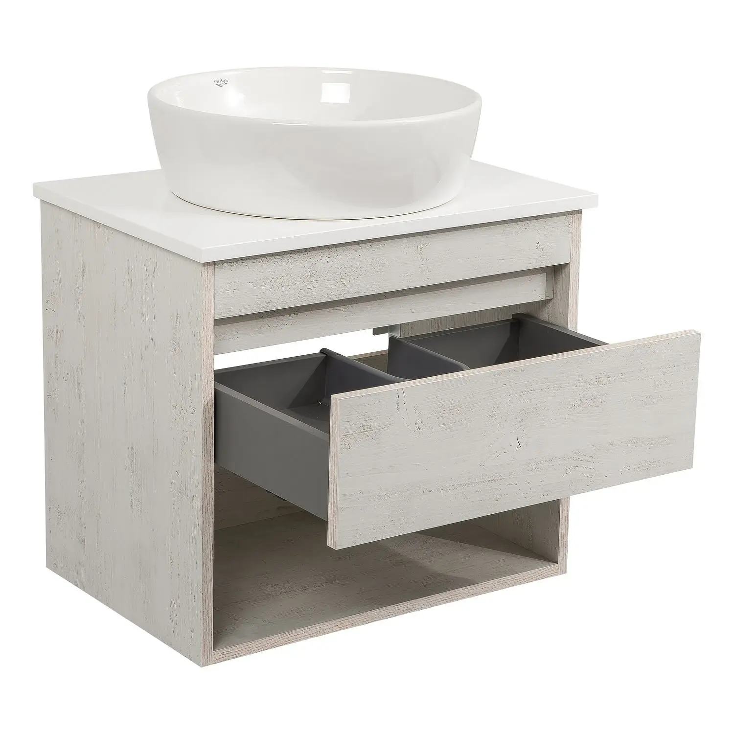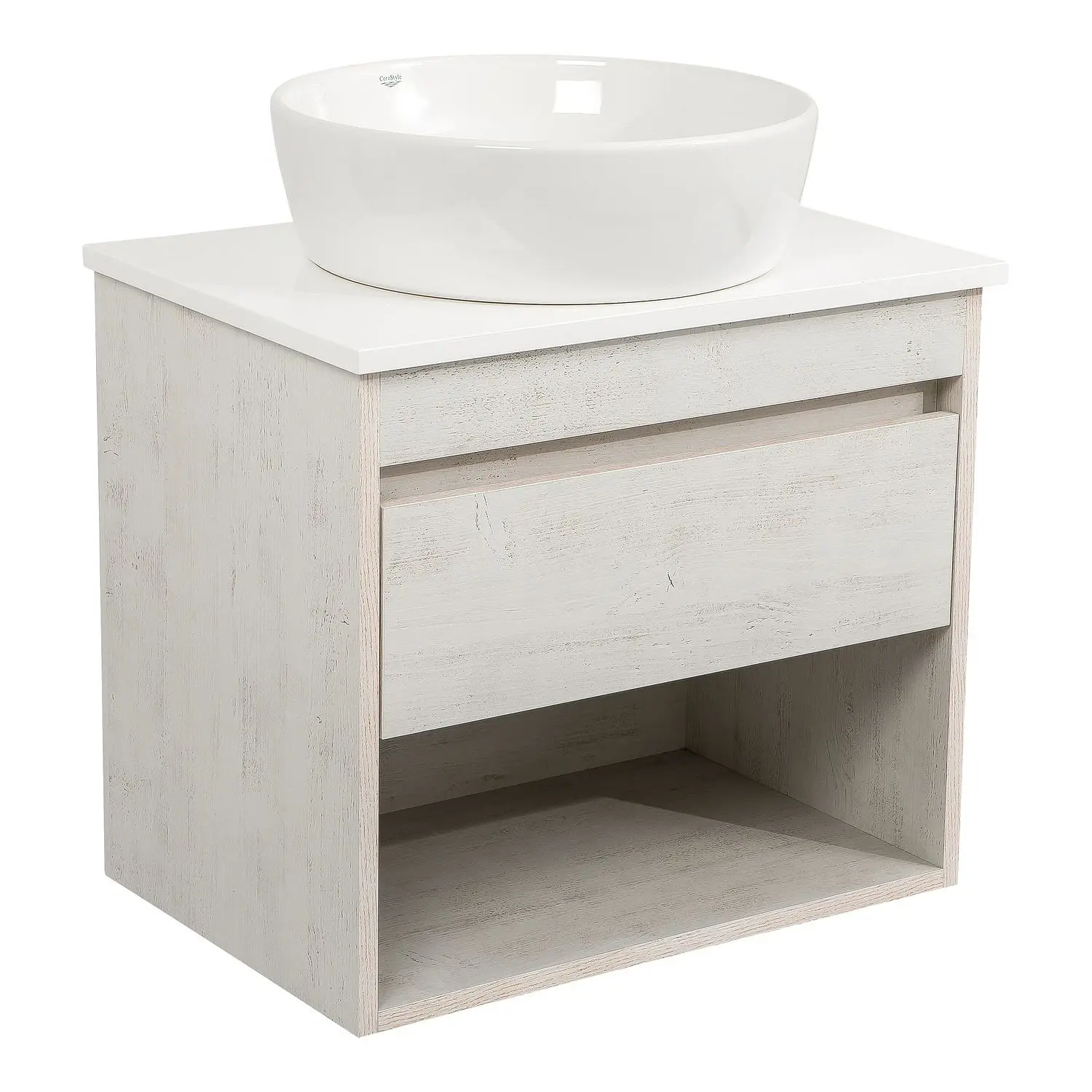 Тумба у ванну Aqua Rodos Шельф 650х460 підвісна, з умивальником CeraStyle One 46, дерево (АР000085177)