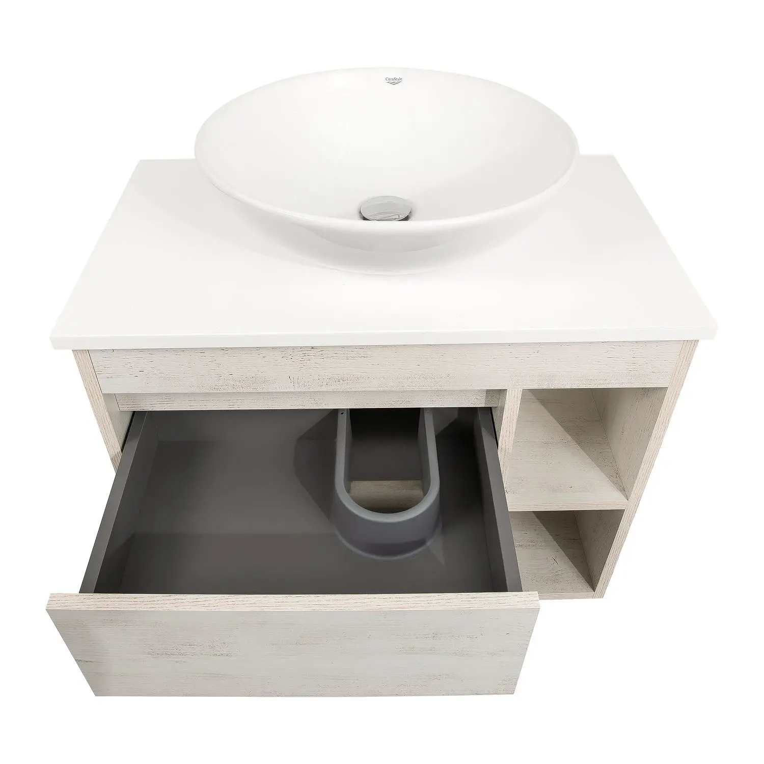 Тумба у ванну Aqua Rodos Шельф 750х460 підвісна, з умивальником CeraStyle Zero 46, дерево (АР000085174)