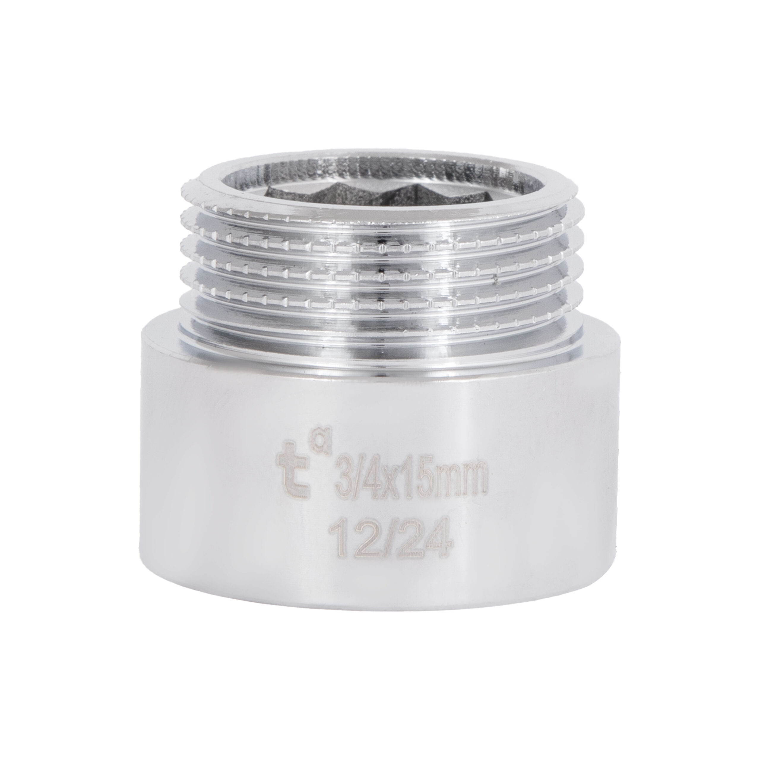 Фітинг – подовжувач SD Plus 15х3/4″ хром SD1302015 виготовляється з латуні та має хромоване покриття. Різьба приєднання – 3/4″, довжина фітинга – 15 мм.