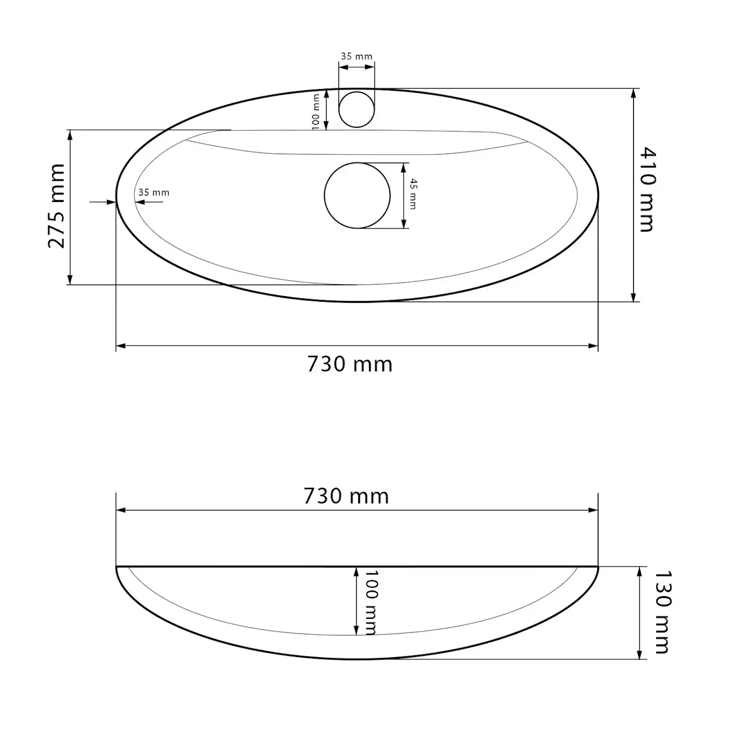 | Глибина чаші, мм | 100 |