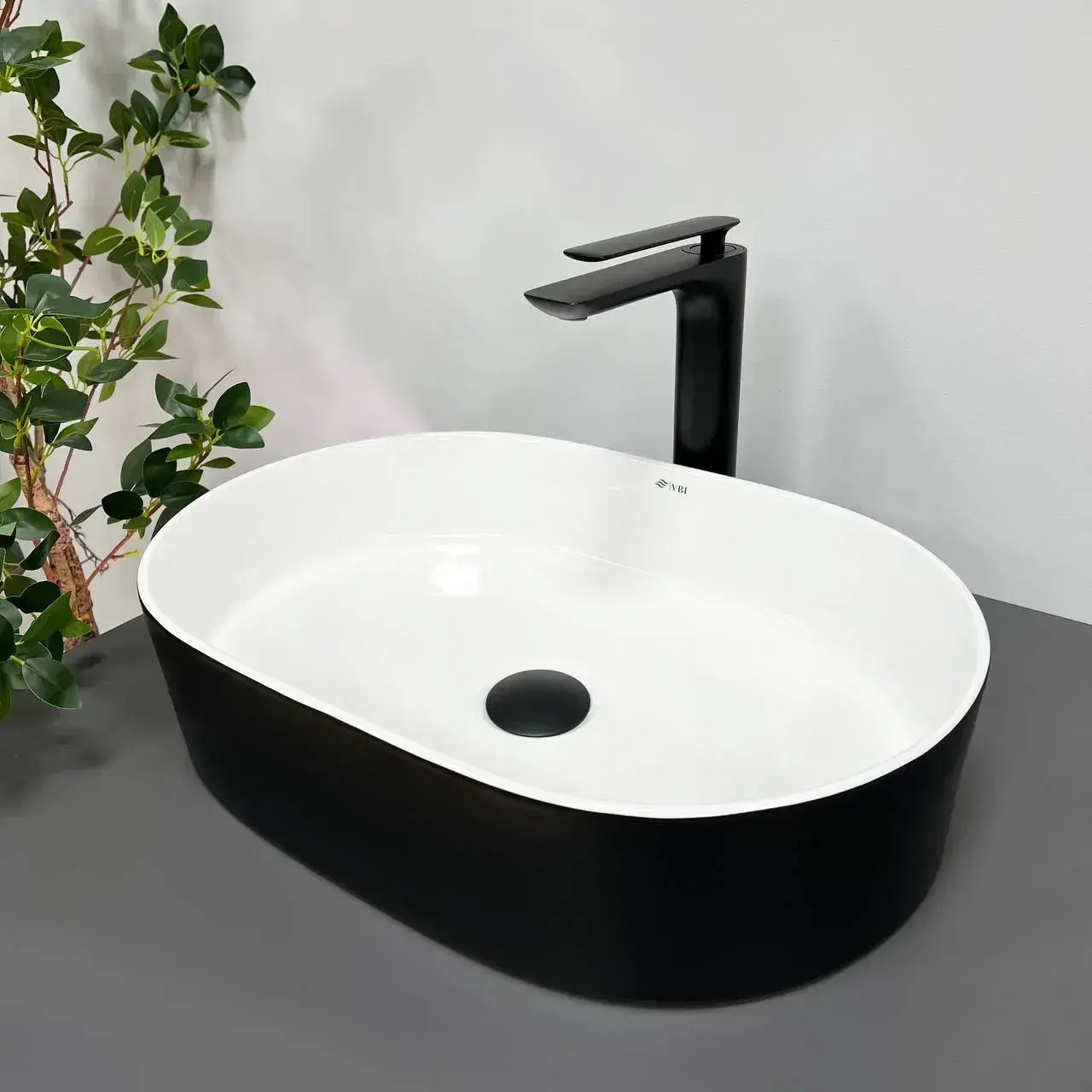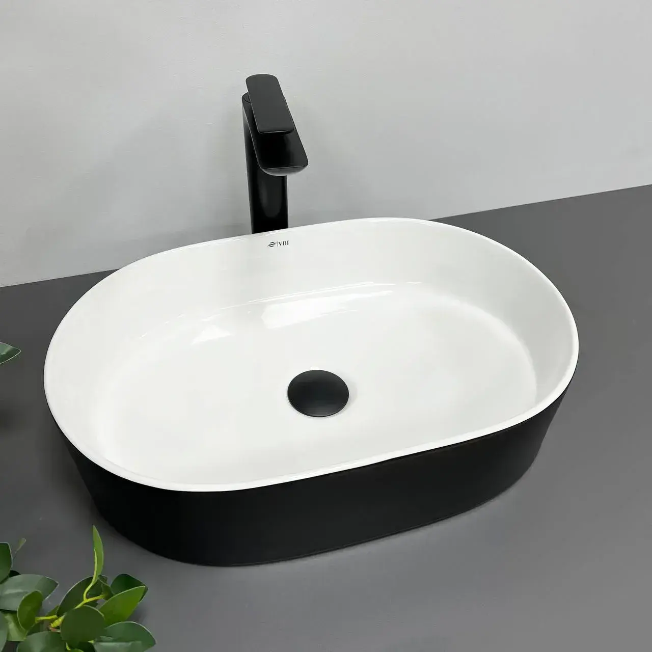 Умивальник накладний VBI Verona 500х340 овальний, білий/чорний (VBI-011309)