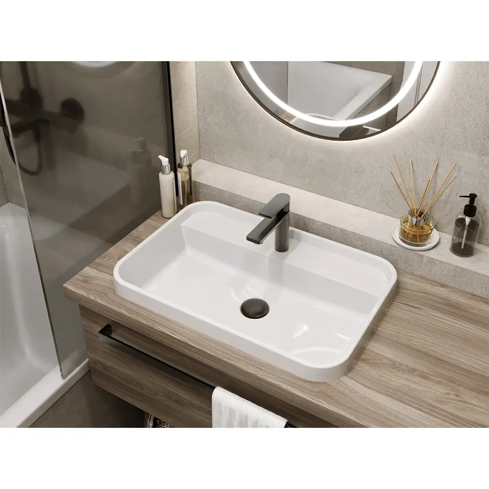 | Тип установки умивальника | Врізний у стільницю, На стільницю |