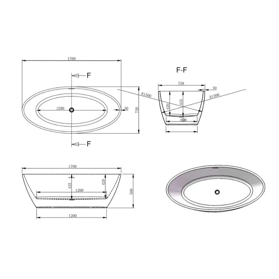 Ванна акрилова VBI Monblan 1700х750 овальна, біла глянцева (VBI-070417)