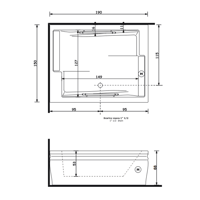 Ванна гідромасажна Treesse Blanque 1915 190×150 акрилова, біла глянцева (V1697)