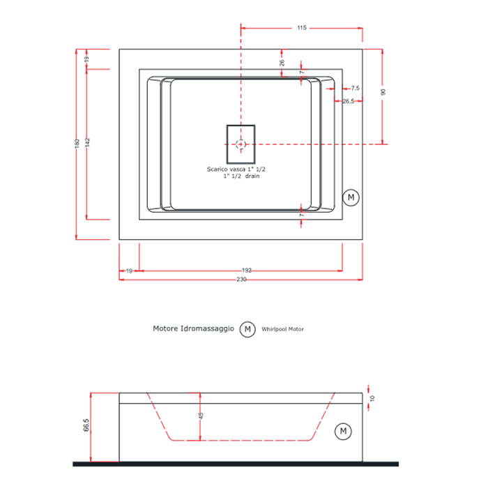 | Додаткові характеристики | Датчик рівня води, Кількість гідромасажних форсунок: 18 шт., Конструкція: На каркасі, Налив води: Прихований налив, Напруга мережі: 230 В / 50 Гц, Потужність нагрівача (терморегулятора): 1300 Вт, Сила струму: 16 А, Система дезінфекції, Споживана потужність гідромасажу: 1350 Вт, Споживана потужність насоса рециркуляції: 115 Вт |
