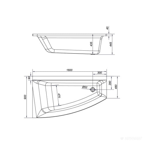 | Форма ванни | Асиметрична |