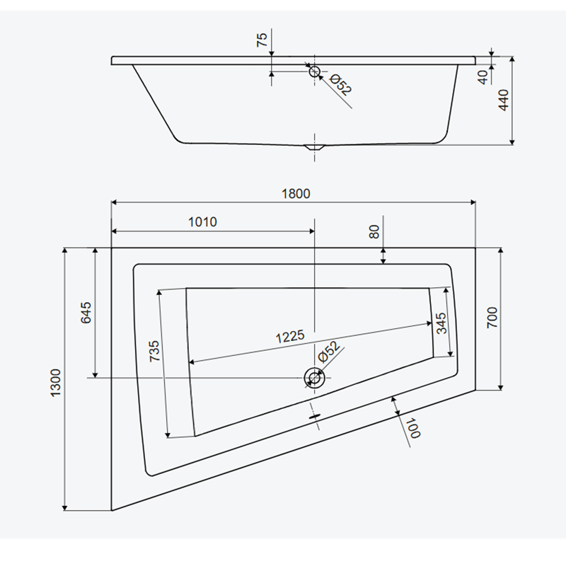 | Форма ванни | Асиметрична |