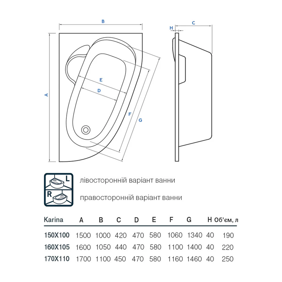 Ванна кутова Koller Pool Karina 160×105 R акрилова, біла глянцева (1209250137)