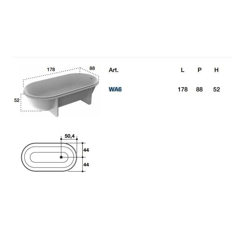 Ванна окремостояча Falper Controstampo 178×88 штучний камінь, біла матова (WA6)
