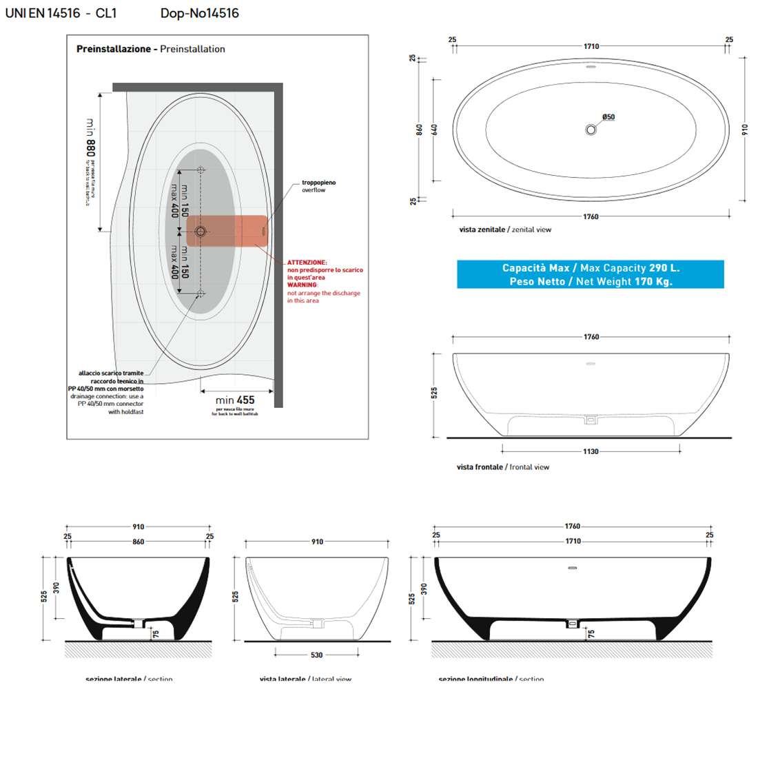 | Довжина ванни, мм | 1760 |
