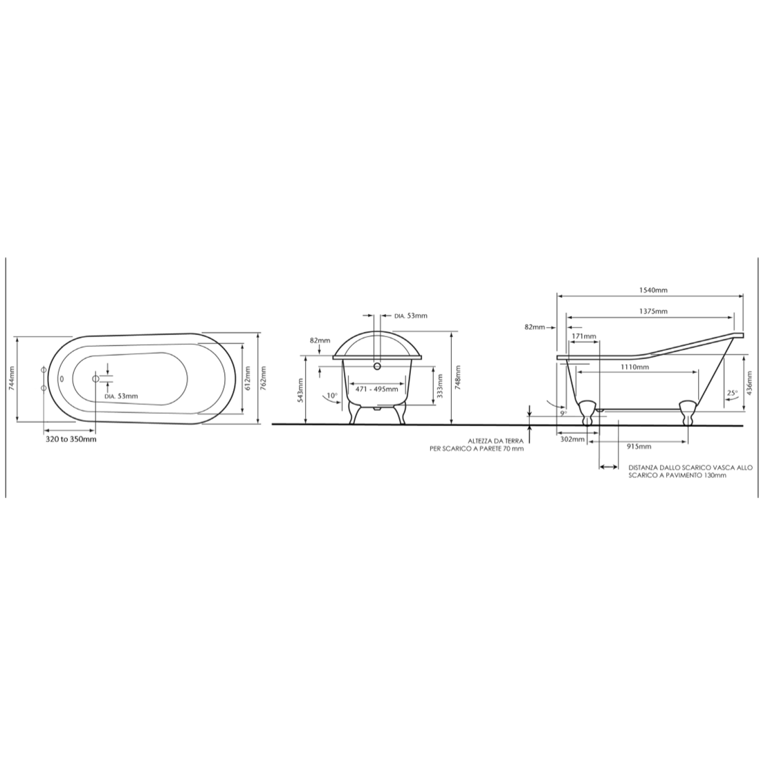 | Висота ванни, мм | 748 |
