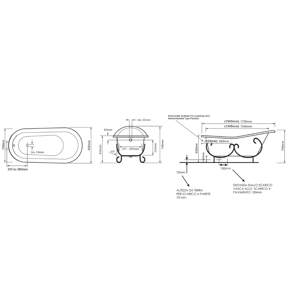 Ванна окремостояча Gaia Rose 170×80 мармурова, біла глянцева (VGM2220RBI)