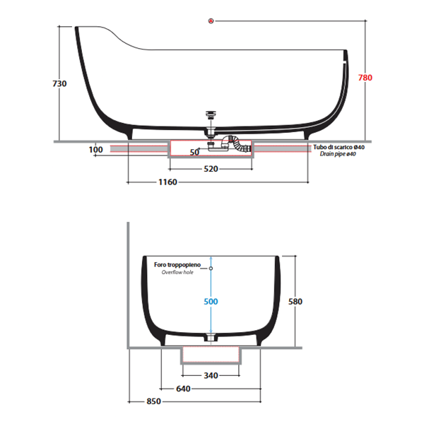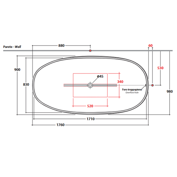 Ванна окремостояча Globo Olivia 176×90 штучний камінь, біла глянцева (VAOLBI)