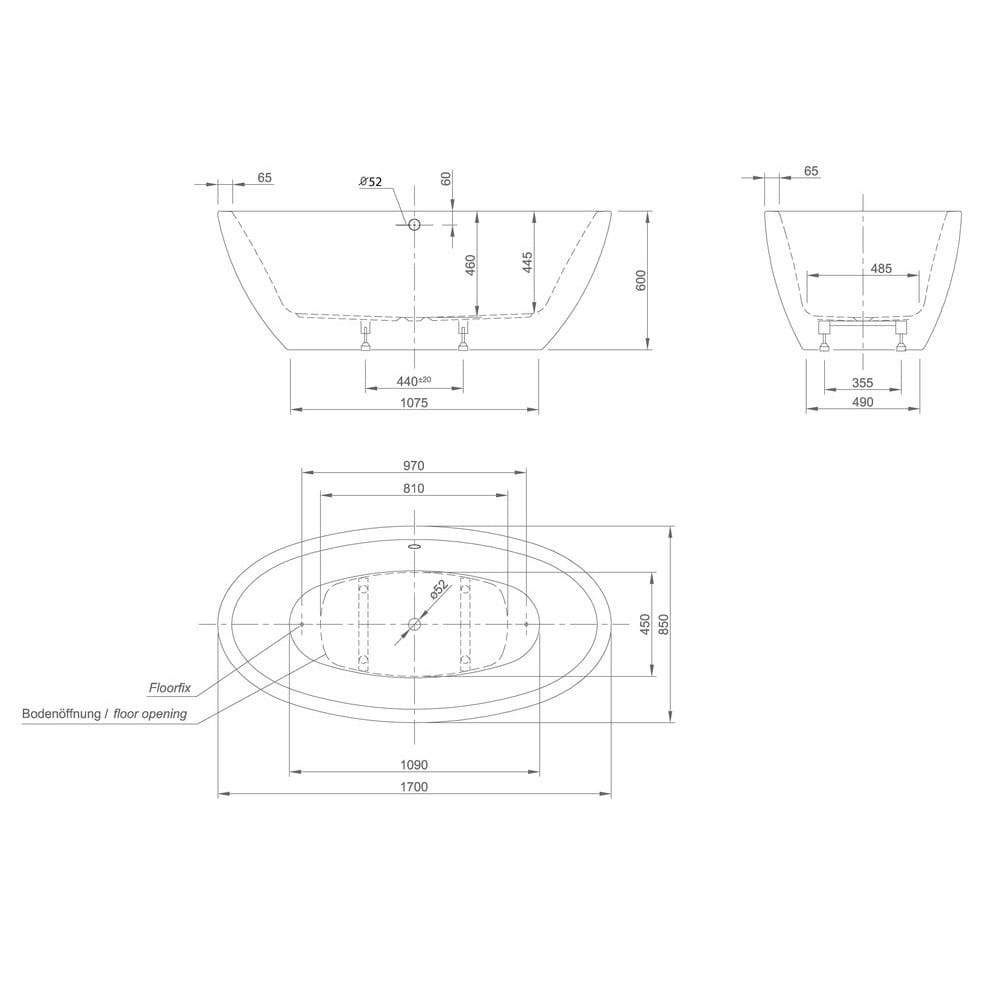 Ванна окремостояча Knief Loom XS 170×85 акрилова, чорна матова (0100-258_0100-091-06S-WGBM)