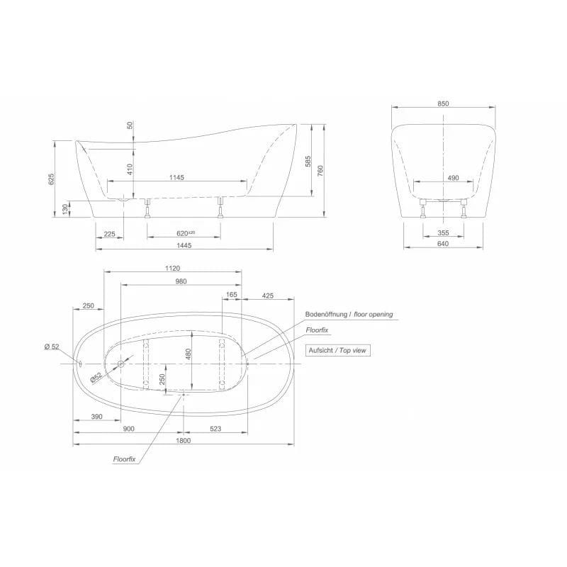 Ванна окремостояча Knief Relax 180×85 акрилова, чорна матова (0100-278 black mat- white mat)