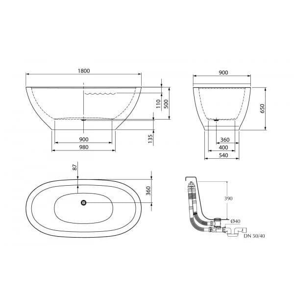 | Комплектація | Ванна, Сифон, Система злив-перелив |