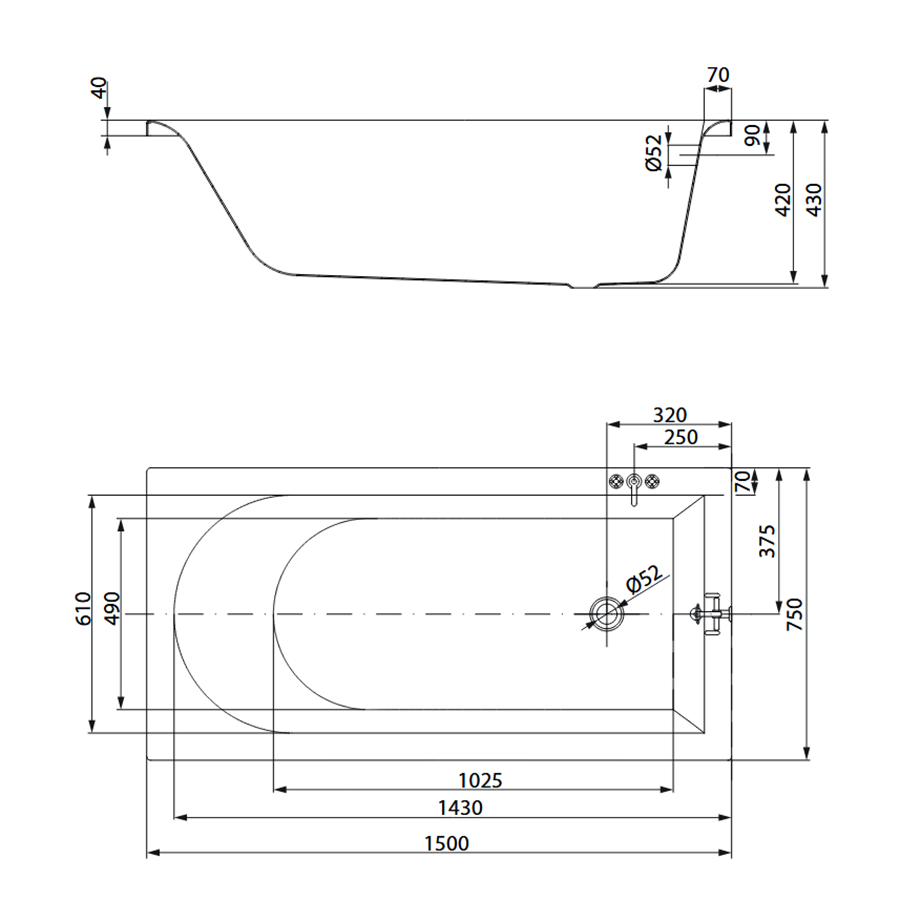 | Довжина ванни, мм | 1500 |