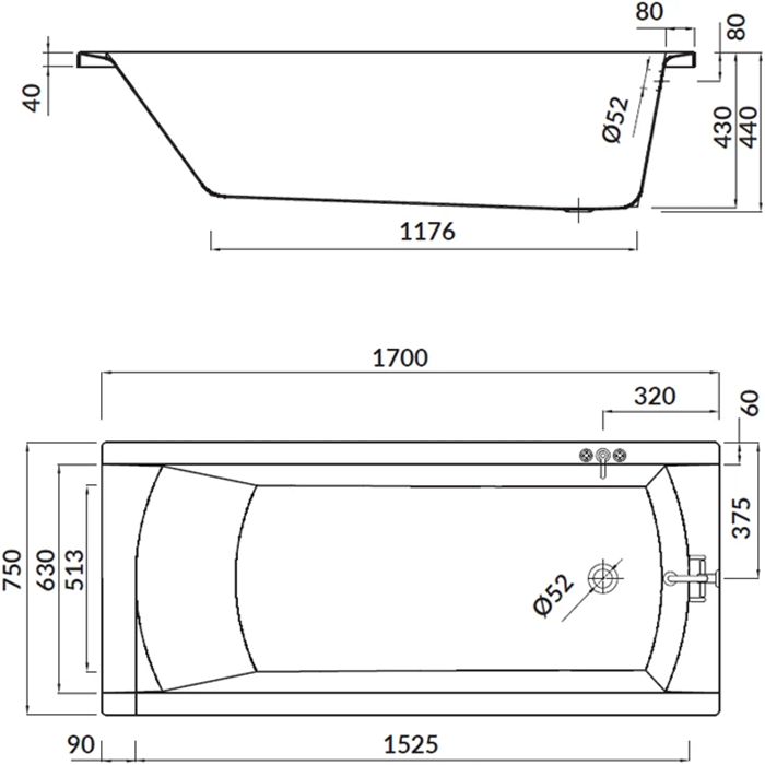 Ванна пристінна Cersanit Korat 170×75 акрилова, біла глянцева (S301-294)