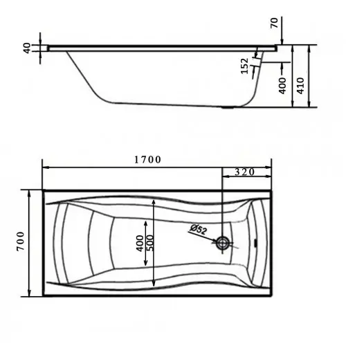| Довжина ванни, мм | 1700 |