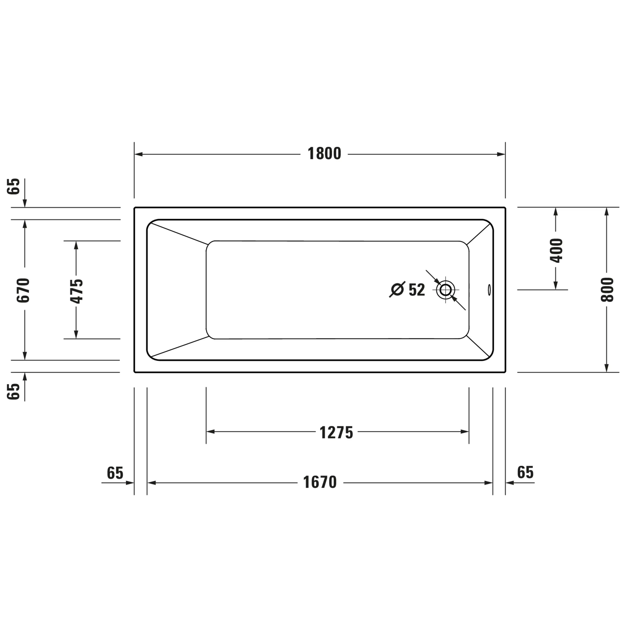 Ванна пристінна Duravit No.1 170×75 акрилова, біла глянцева (700490000000000)