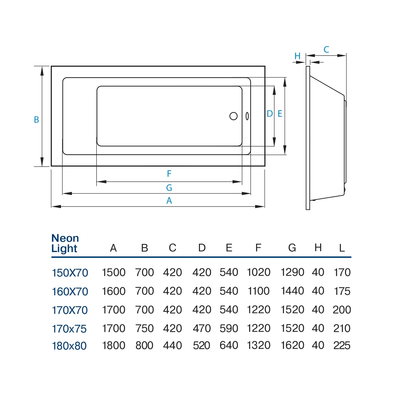 Ванна пристінна Koller Pool Neon Light 160×70 акрилова, біла глянцева (1217250130)