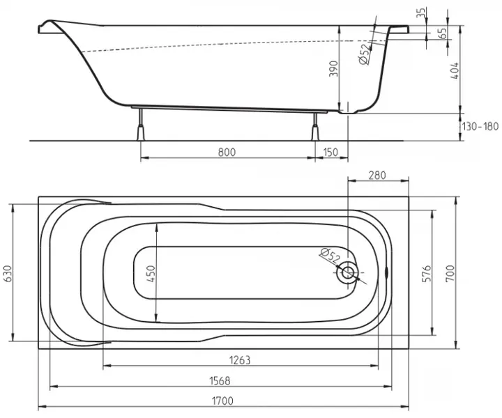| Довжина ванни, мм | 1700 |