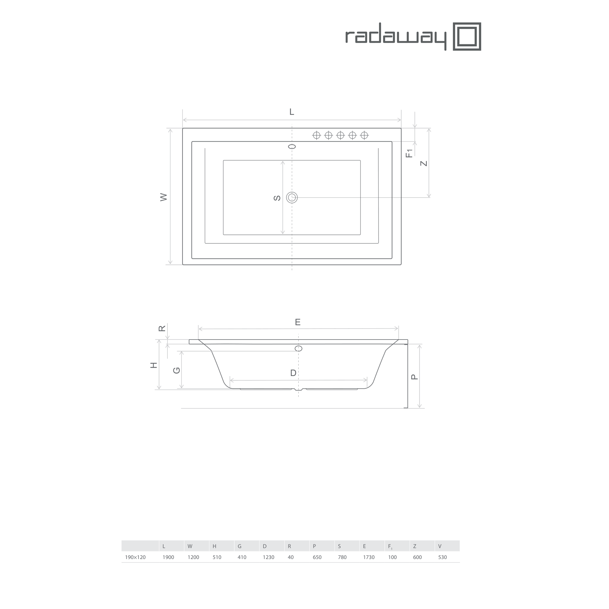 Ванна пристінна Radaway Itea Lux 190×120 акрилова, біла глянцева (WA1-29-190x120U)