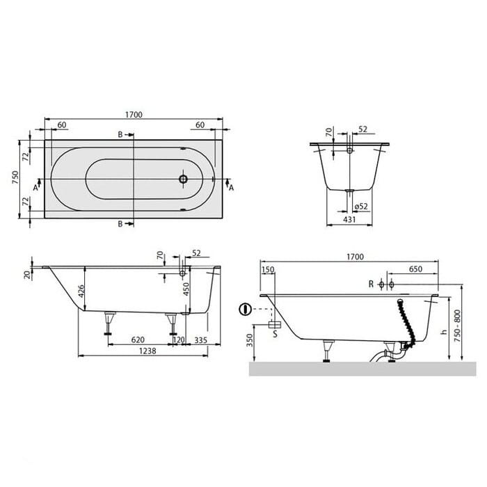 | Довжина ванни, мм | 1700 |