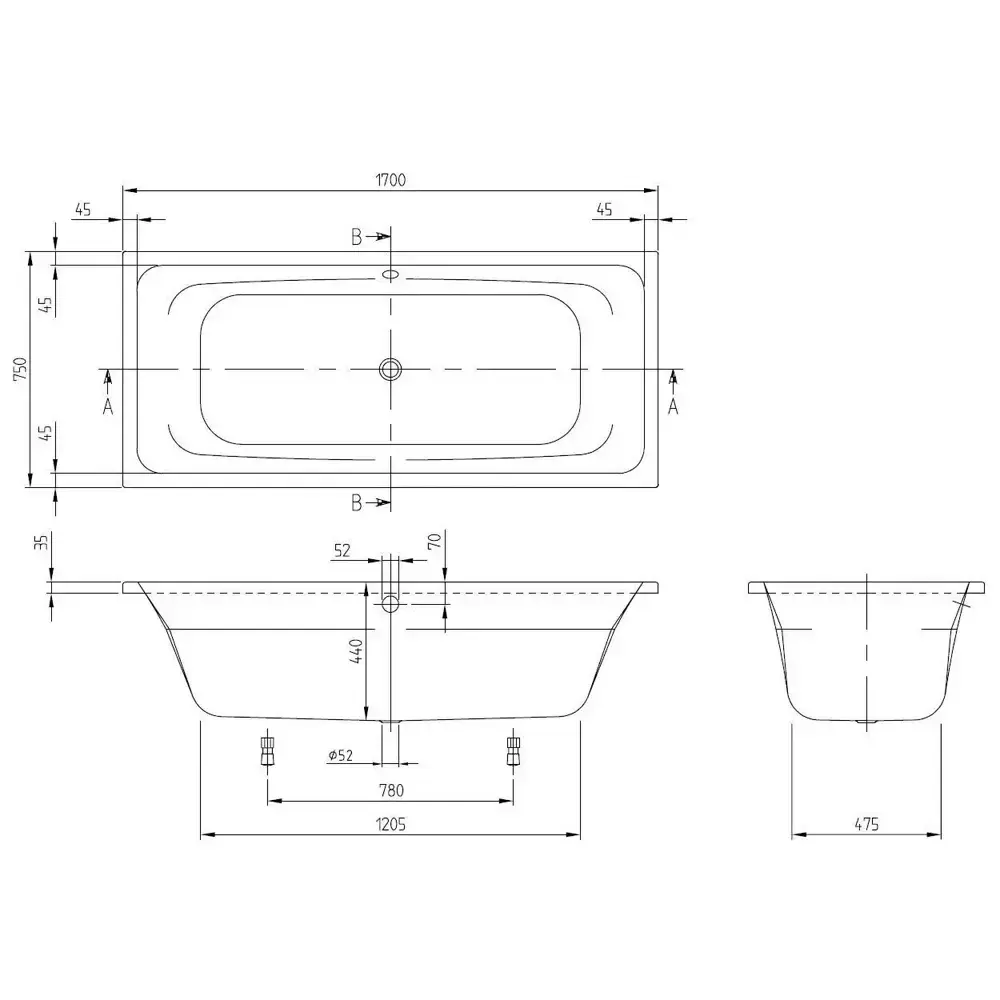 | Довжина ванни, мм | 1700 |