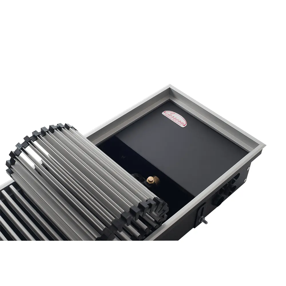| Додаткові характеристики | Доступна для покупки комплектація «Комплект S» (з решіткою та рамкою), при цьому на вибір пропонуються варіанти решіток, що підходять до серії внутрішньопідлогових конвекторів Carrera |