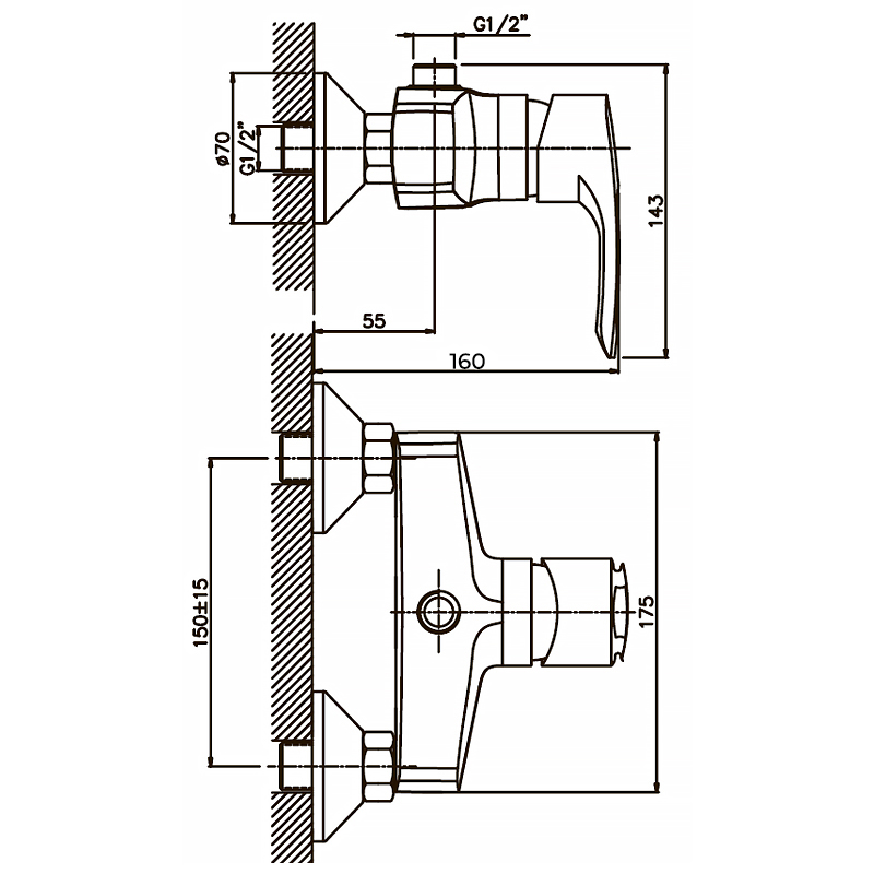 Змішувач для душу Haiba Hansberg 003 одноважільний, сатин + ручна лійка (HB0174)