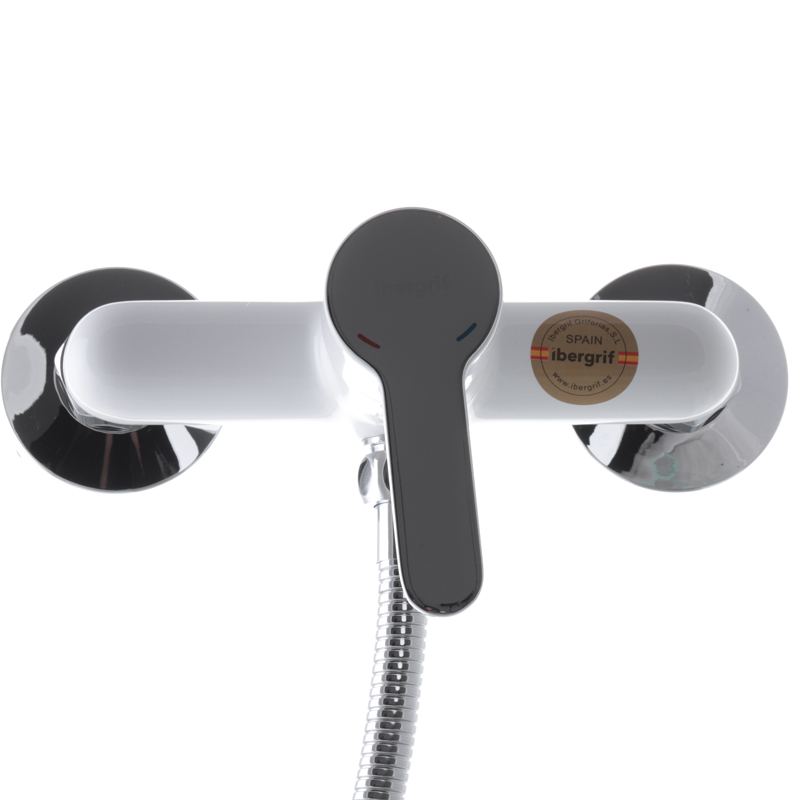 Змішувач для душу Ibergrif Square M12022w одноважільний, білий/хром + ручна лійка (IB0032)