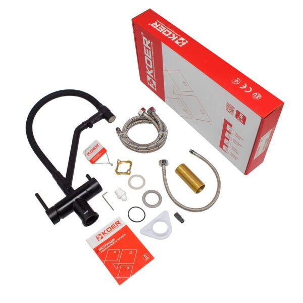 Змішувач для кухні Koer KB-72006-05 двоважільний, чорний матовий (KR3380)