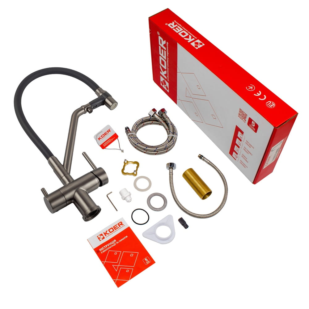 Змішувач для кухні Koer KB-72006-07 двоважільний, графіт (KR3382)