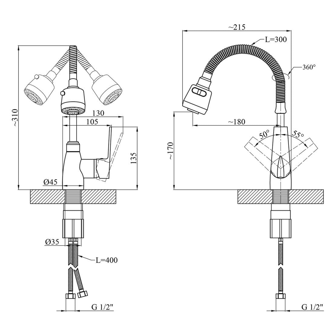 | Висота змішувача, мм | 310 |