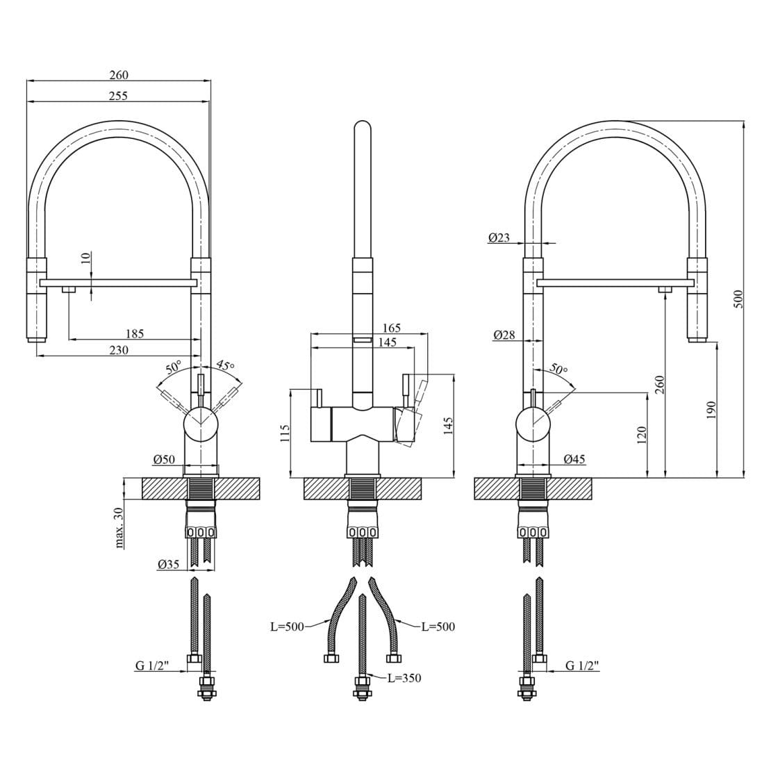 | Висота змішувача, мм | 500 |