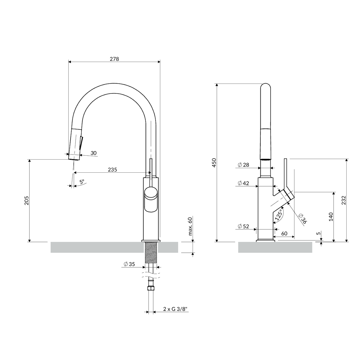 | Тип виливу | U-подібний, Високий, Поворотний |