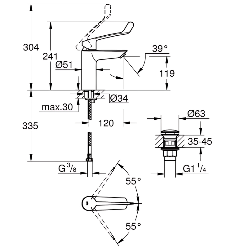 | Комплектація | Змішувач, Гнучка підводка, Кріплення, Набір донного клапана 1 1/4 |