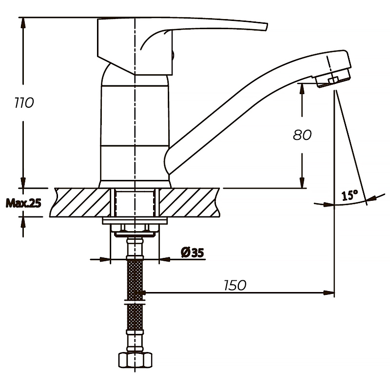 | Висота змішувача, мм | 110 |