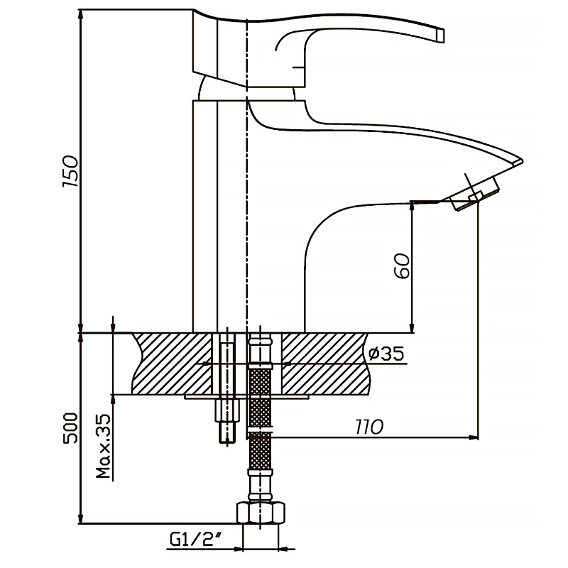 | Комплектація | Змішувач, Аератор Neoperl, Гнучка підводка з нержавіючої сталі (450 мм, 1/2), Кріпильна шпилька, Гумові прокладки |