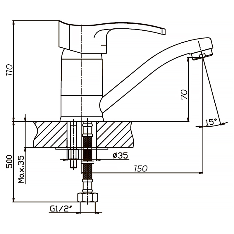 | Комплектація | Змішувач, Аератор Neoperl, Гнучка підводка з нержавіючої сталі (450 мм, 1/2), Кріпильна шпилька, Гумові прокладки |