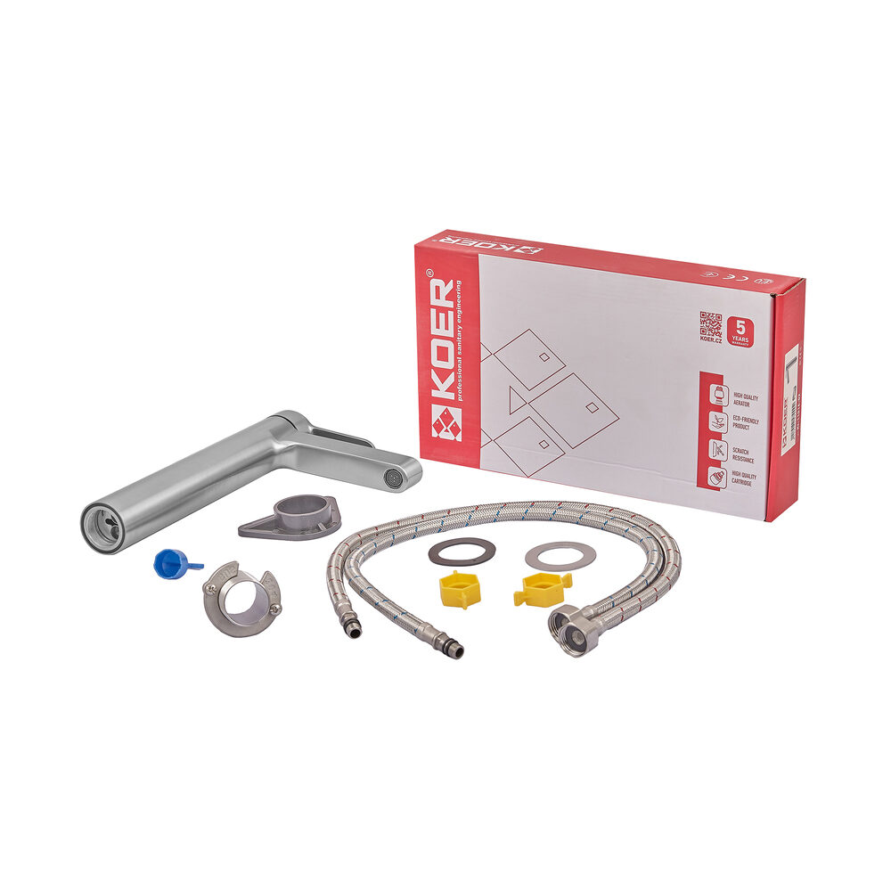 Змішувач для раковини Koer KI-11016-02 одноважільний, нержавіюча сталь (KR4790)
