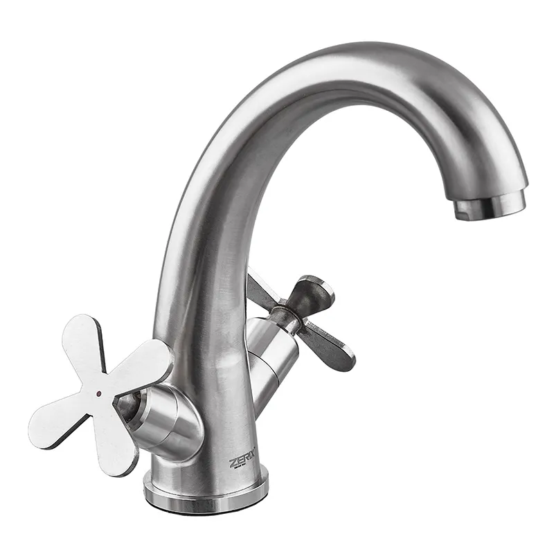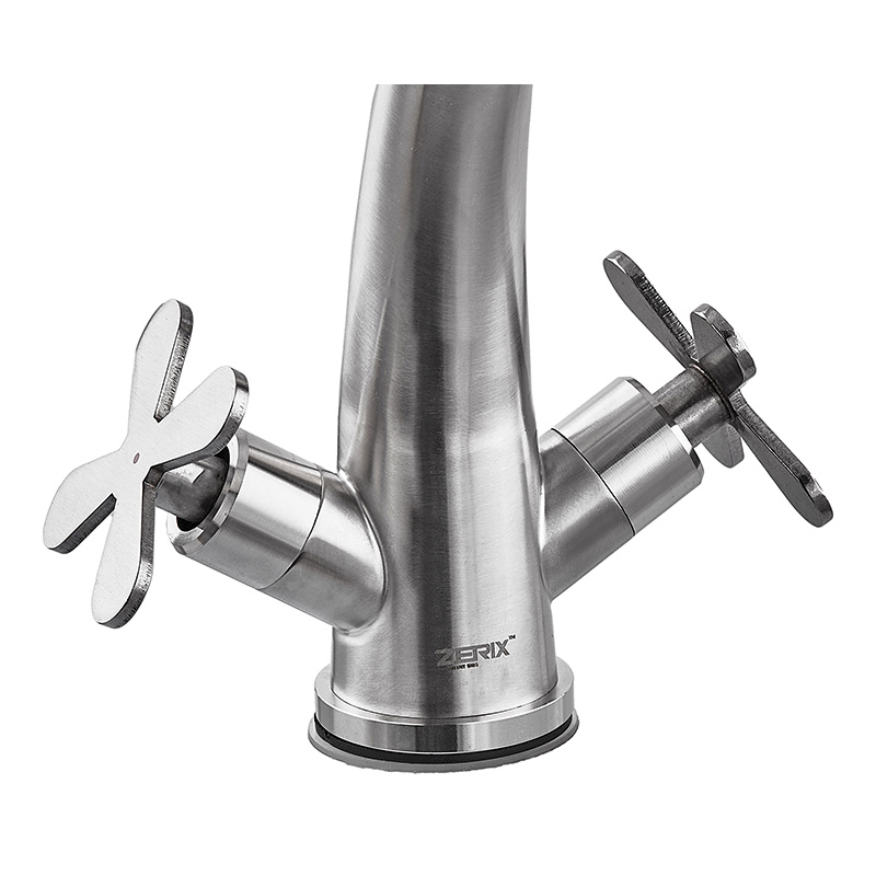 Змішувач для раковини Zerix GTA-001-C двовентильний, нержавіюча сталь (ZX5613)