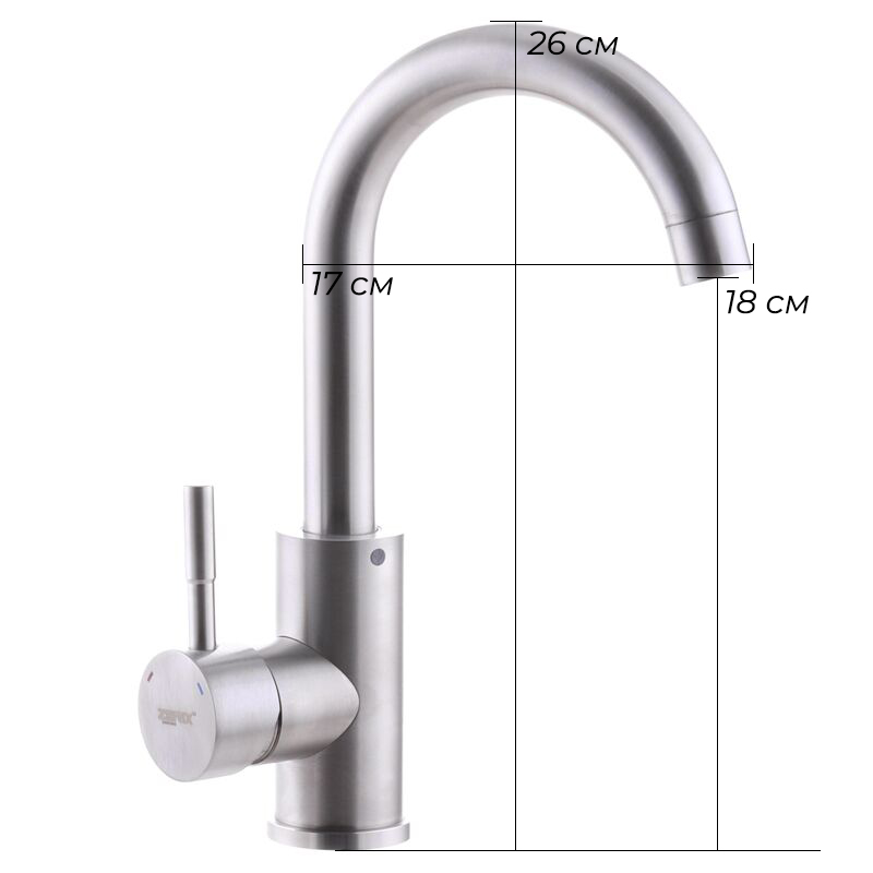 Змішувач для раковини Zerix SUS-001 одноважільний, нержавіюча сталь (ZX3116)