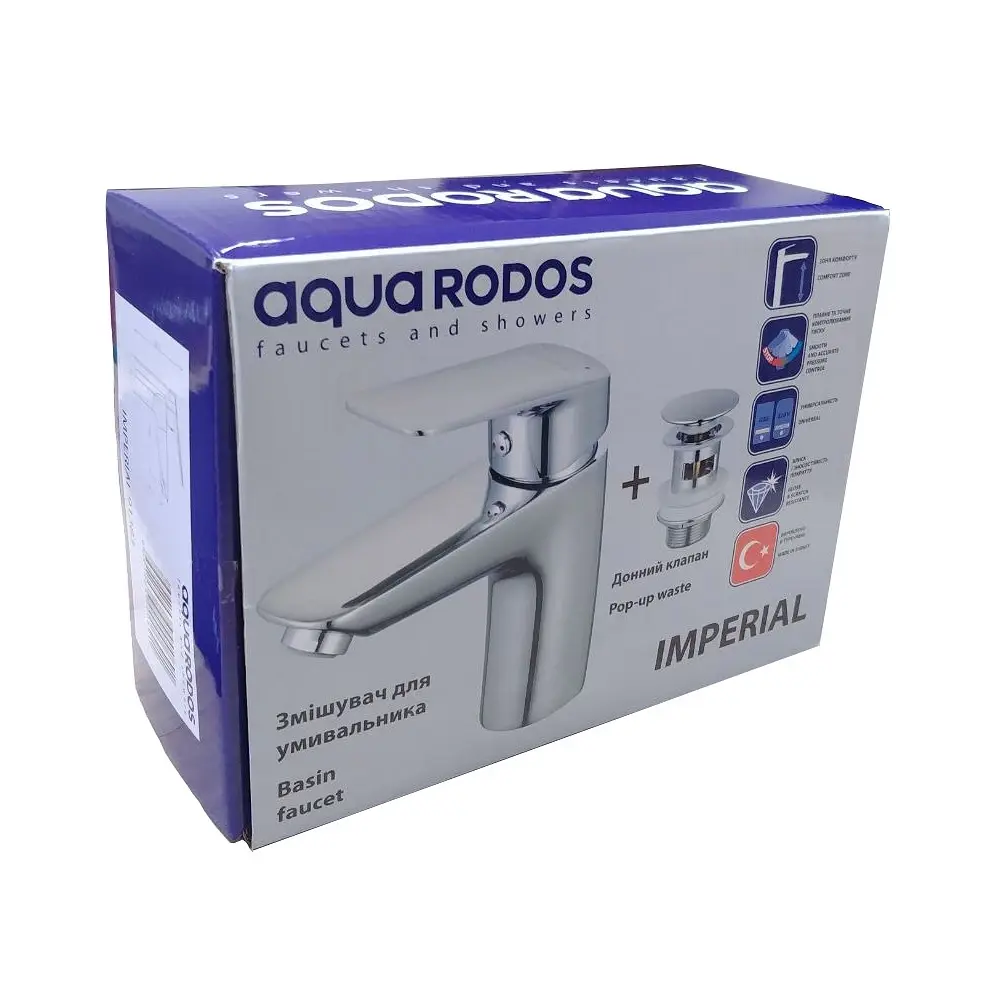 Змішувач для умивальника Aqua Rodos Imperial 91383 з донним клапаном, хром (АР000040902)