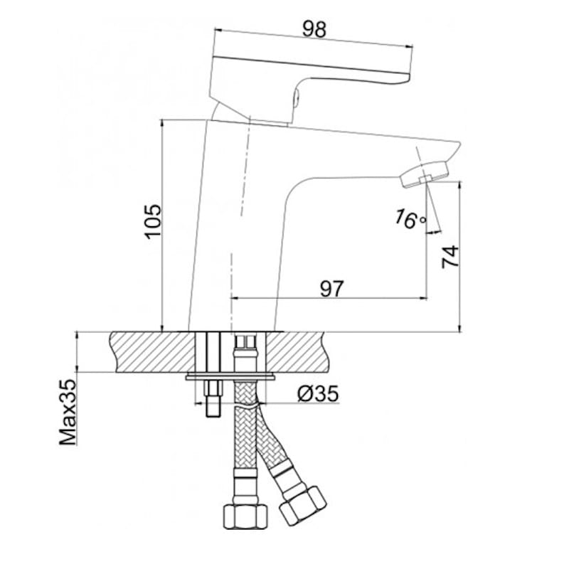 | Комплектація | Гнучке підведення, донний клапан, Кріплення, Змішувач для раковини |