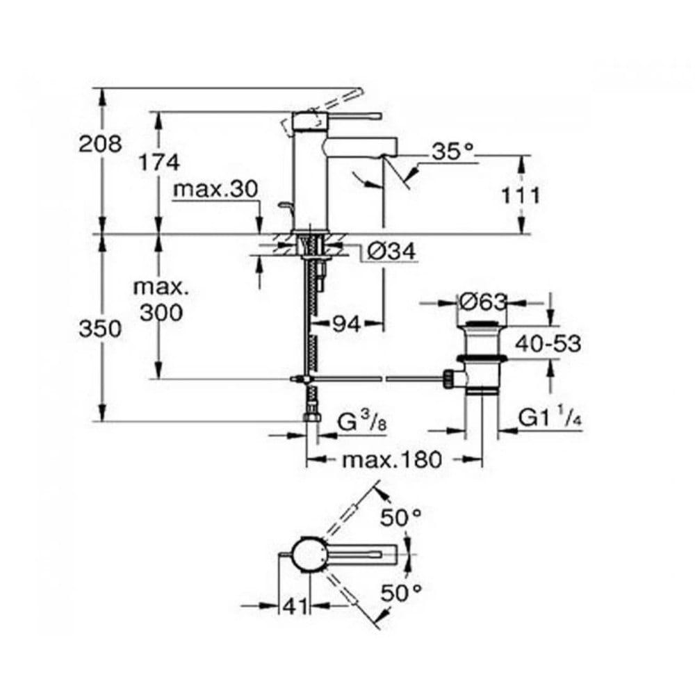 Змішувач для умивальника Grohe Essence однорічний, хром + донний клапан (32898001)