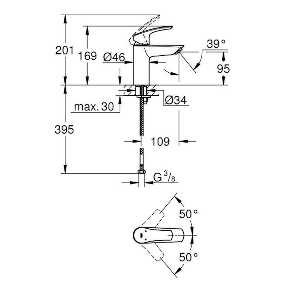 Змішувач для умивальника Grohe Eurosmart New S-Size одноважільний, чорний матовий (324672433)