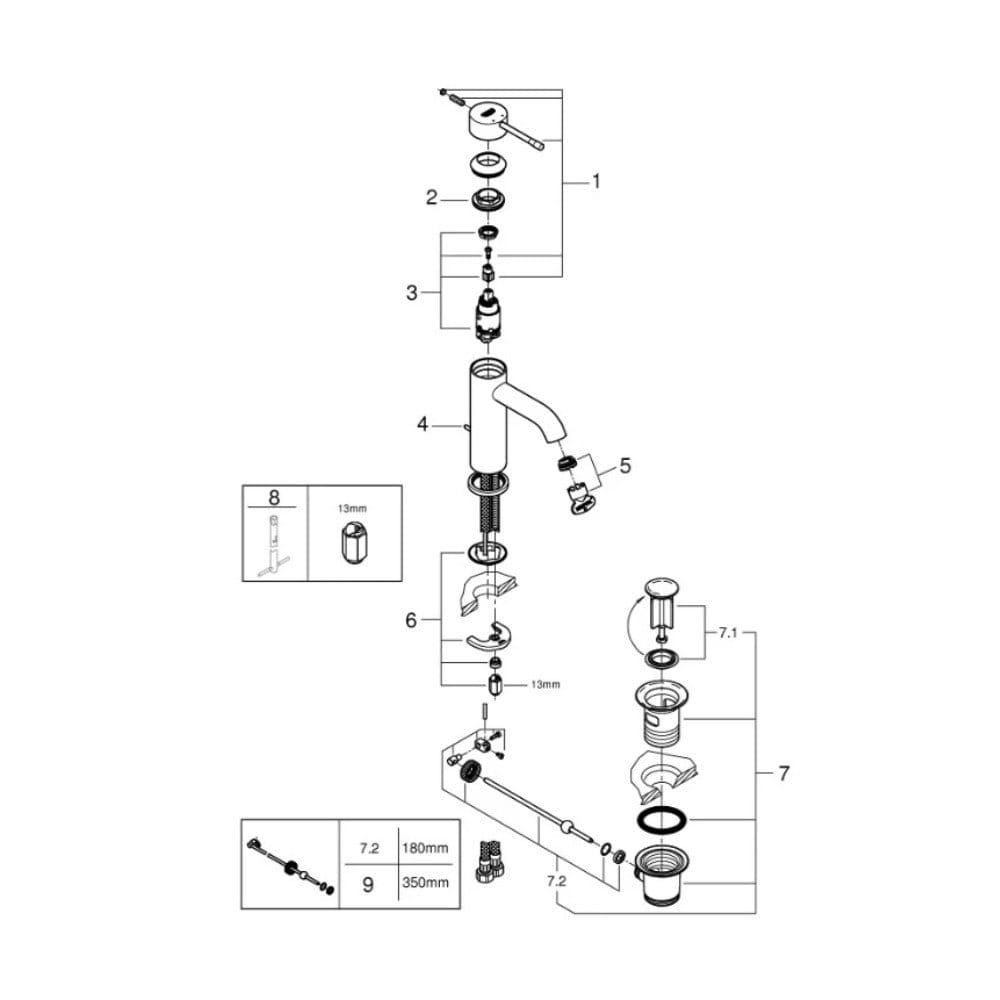 Змішувач для умивальника Grohe S-Size Essence New одноважільний, хром + донний клапан (23589001)